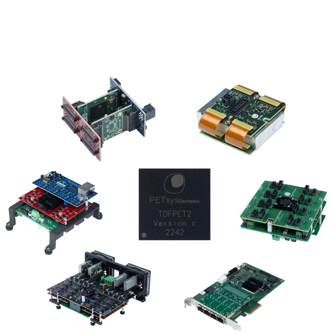 PETsys Electronics solutions are suitable for several applications including PET, SPECT, muon tomography, and nuclear physics or astrophysics experiments requiring high-precision time and amplitude measurements from photo-detector devices such as Silicon Photomultipliers and Micro-Channel Plate Photomultipliers.