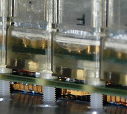 PETsys Electronics provides complete Detector Modules for PET scanners. The Detector Modules are based on LYSO crystals associated to Silicon Photomultipliers or Avalanche Photodiodes. The Detector Module includes low-noise and low-power electronics for detector biasing, pulse conditioning, time and amplitude measurement and digital readout. High-speed digital links for clock and sync distribution, data readout and frontend configuration allow for easy integration in high-performance data acquisition systems.