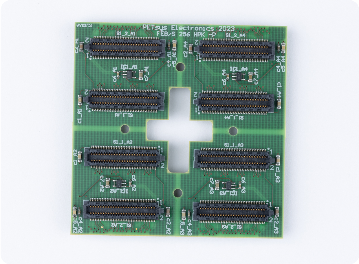 PETsys can customize the FEB/S boards of both FEM128 and FEM256 to match specific SiPM array models, sizes, and geometries, ensuring compatibility with your detector architecture.