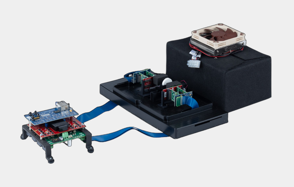 The system comes with pre-installed firmware and intuitive Linux-based data acquisition software featuring a graphical user interface. Complete source code is provided for advanced customization. For immediate hands-on experience, the kit includes two Broadcom AFBR-S4N44P014M SiPM pixels mounted on adpater boards, LYSO crystals, a radioactive source holder, and a cooling box with Peltier elements for stable, reproducible measurements. Each purchase includes personalized training for one or two users covering system operation and software usage.
