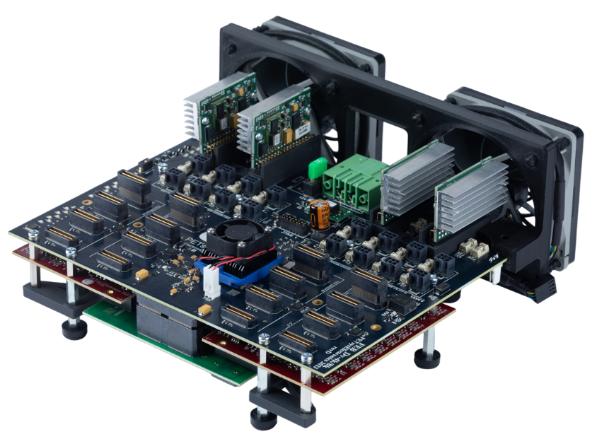 - Integrated bias voltage mezzanines supply adjustable voltages (0-72V) to SiPM arrays with configurable current options per line.