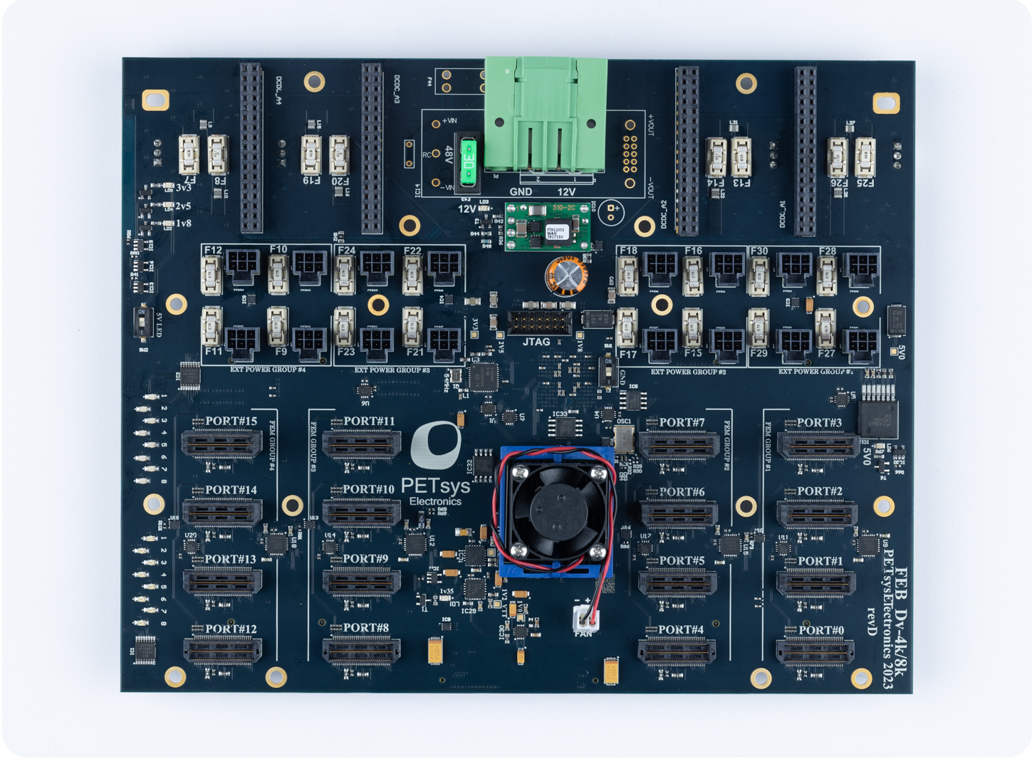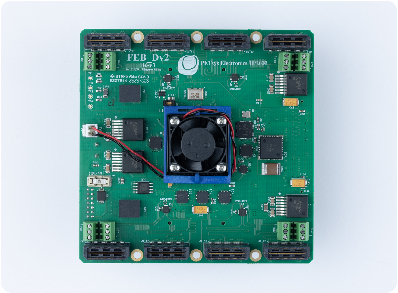 Two versions of the FEB/D module are available: the FEB/D-1k, optimized for small to medium-sized systems with a moderate number of channels, and the FEB/D-8k, built for large-scale PET systems requiring high scalability.