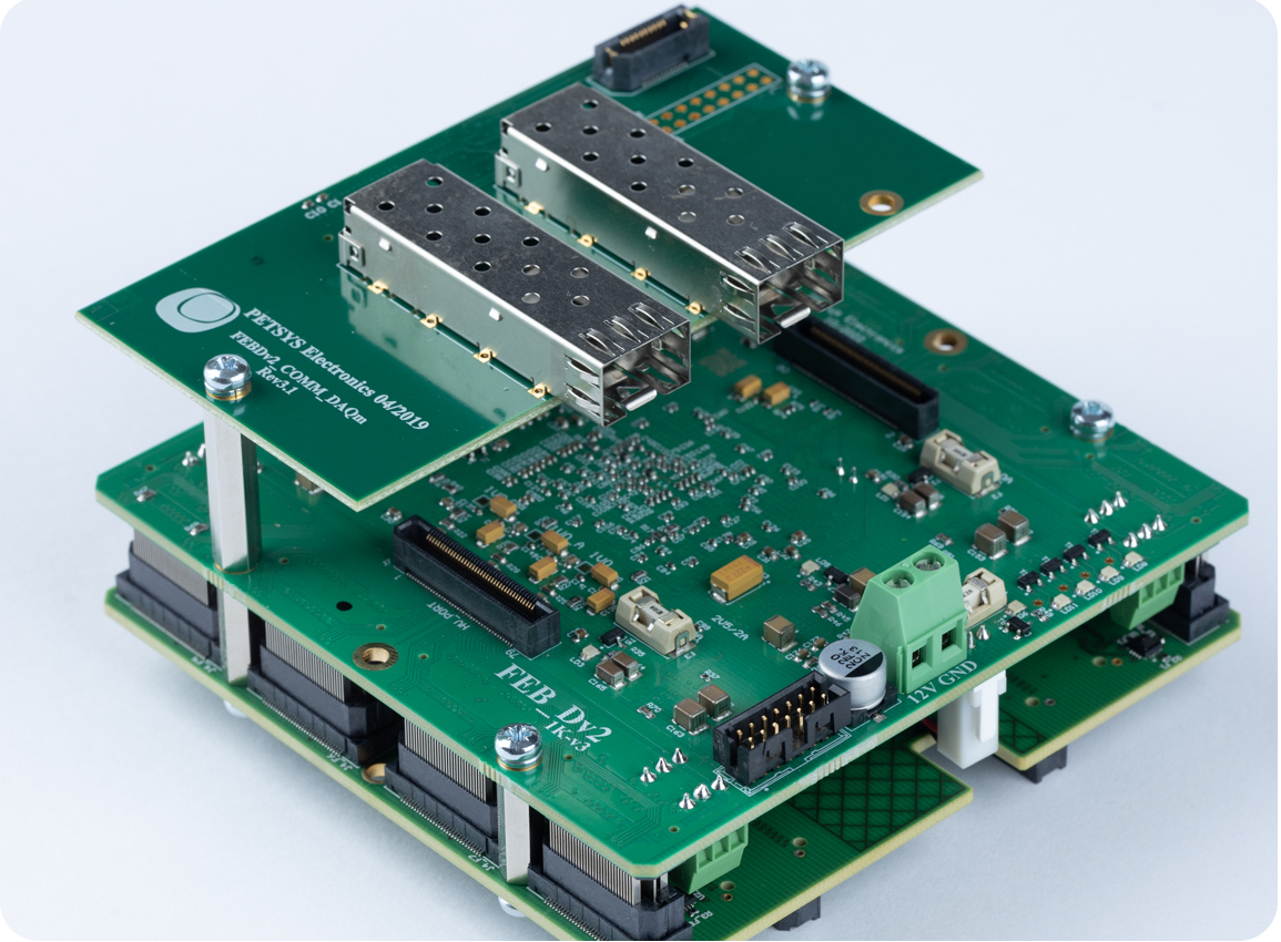 Built on the same motherboard as FEB/D modules, it shares the communication mezzanine and protocol, allowing seamless daisy-chain integration with other FEB/Ds and the DAQ board. The standard module supports up to 16 FEB/D modules with 4 trigger regions each, with larger configurations available upon request.